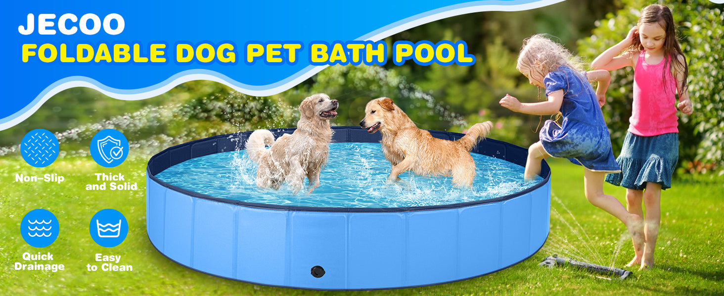 Jecoo Dog Pool for Large Dogs Foldable Kiddie Pool Hard Plastic