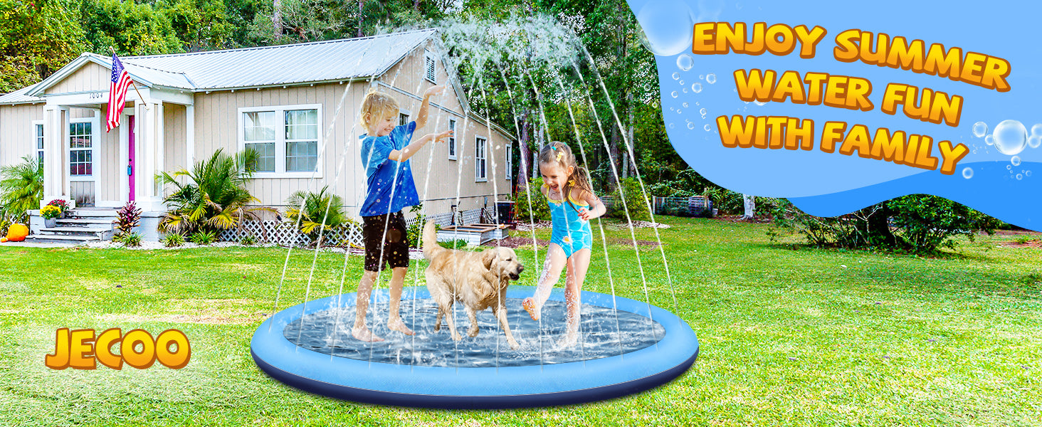 Jecoo spacious sprinkler pad provides enough space for kids, puppy and dogs to cool off with families. Let you get close to nature and enjoy wonderful summer time. Perfect for outdoor activities at outdoor, backyards, patio and lawns.