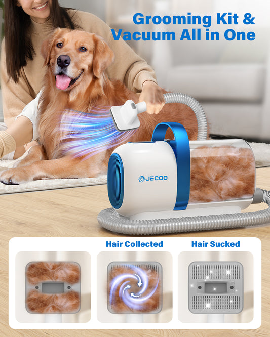Jecoo Dog Grooming Kit & Dog Hair Vacuum with Clippers and Brush